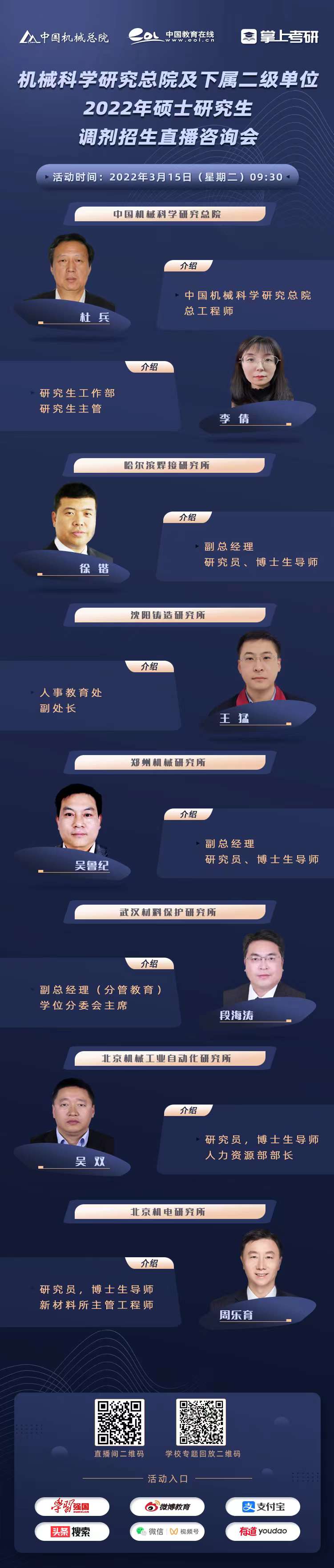 直播預(yù)告 | 機械科學(xué)研究總院及下屬二級單位2022年碩士研究生調(diào)劑招生直播咨詢會